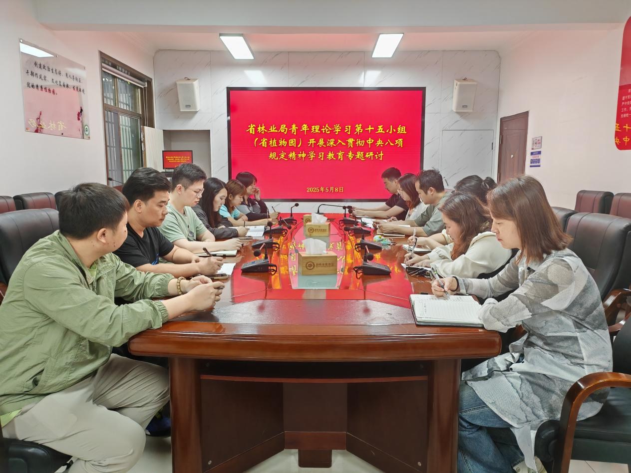为深入贯彻落实中央八项规定精神,加强青年干部队伍作风建设。5月8日,省植物园青年理论学习小组精心组织了深入贯彻中央八项规定精神学习教育专题研讨会。会议深入学习习近平总书记关于加强党的作风建设的重要论述,传达省委和省局相关会议精神,围绕年轻干部思想政治建设进行研讨交流。