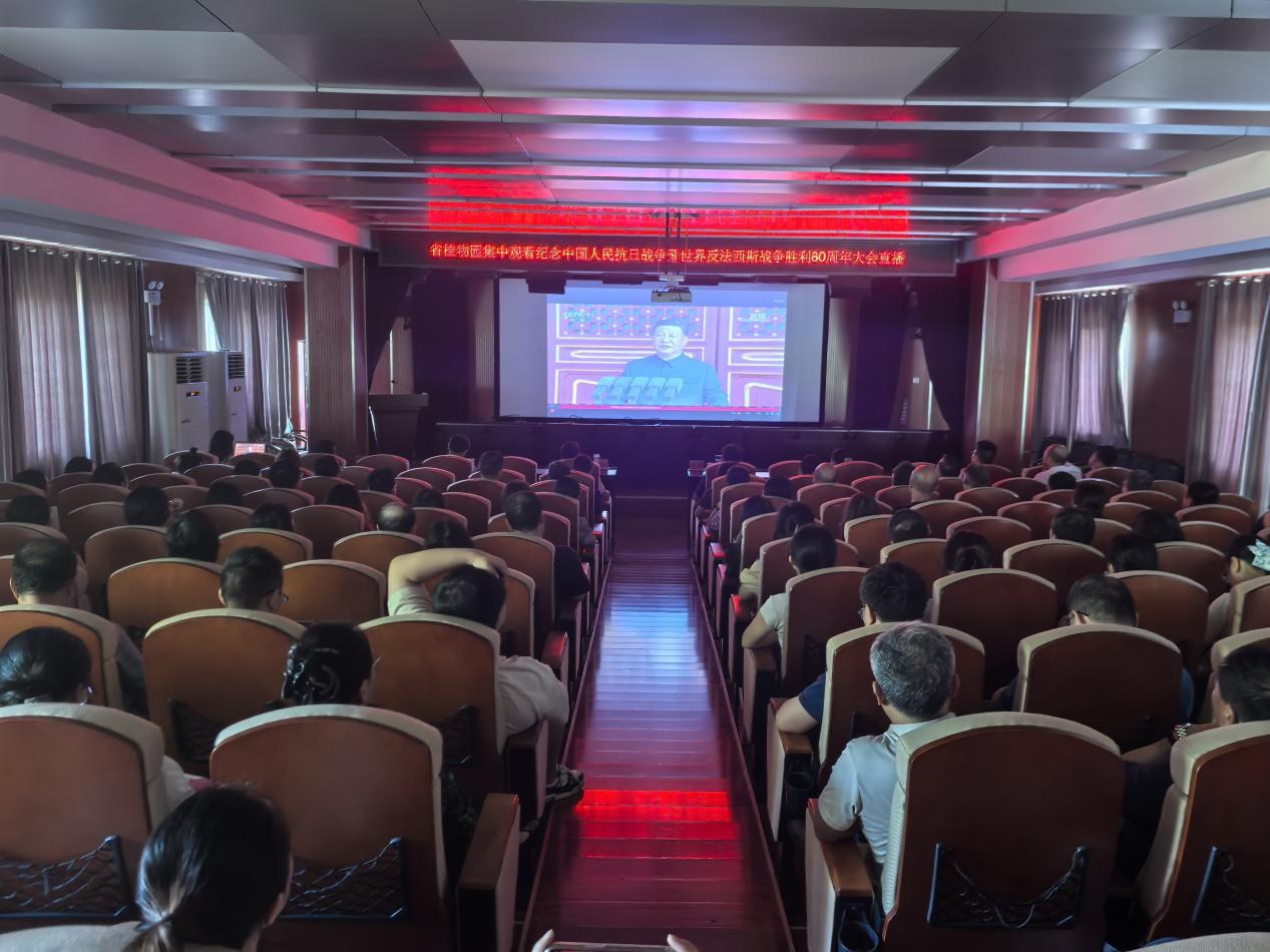 9月3日,纪念中国人民抗日战争暨世界反法西斯战争胜利80周年大会在北京天安门广场隆重举行。根据统一部署,湖南省植物园积极组织全体干部职工集中收看了大会实况直播,共同回顾光辉历程,缅怀革命先烈。