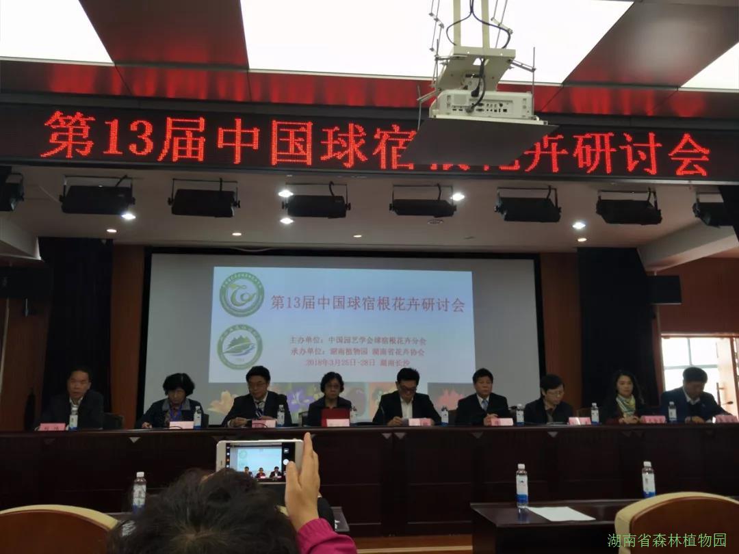 2018年3月25-28日,第13届中国球宿根花卉研讨会在湖南省长沙市召开。本次会议由中国园艺学会球宿根花卉分会主办,湖南省森林植物园、湖南省花卉协会承办,并得到了国家花卉产业技术创新战略联盟的特别支持。来自全国19个省市、54家单位的146人参加了会议。中国园艺学会副理事长张启翔教授、湖南省林业厅隆义华巡视员、中国园艺学会球宿根花卉分会名誉会长赵祥云教授、湖南省林业厅科技外事处罗四清调研员、BGCI中国项目办文香英主任、球宿根花卉分会会长刘青林教授、副会长义鸣放教授、湖南省森林植物园党委书记彭春良研究员、湖南省森林植物园主任、湖南省花卉协会会长刘玮研究员在26日上午的开幕式主席台就座。刘伟主任、刘青林会长、张启翔副理事长、隆义华巡视员先后致辞。张启翔副理事长以中国花卉产业的发展面临的机遇和挑战为题阐述了中国花卉产业近年来的快速发展及面临的发展机遇。