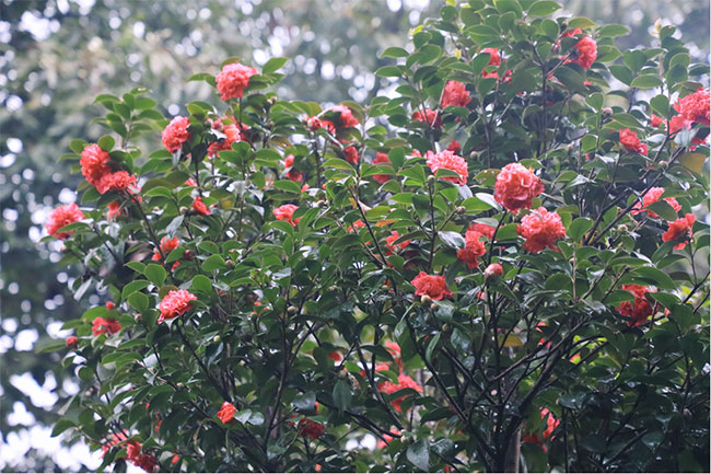 山茶花花蓓累累、次第开放