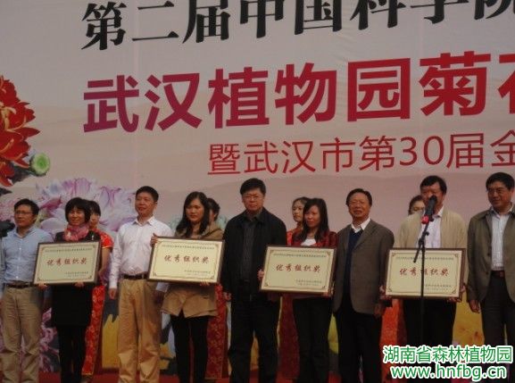 11月9日,2013年中国科学院名园名花展暨武汉植物园第二届菊花文化节在武汉植物园举行,彭春良主任率党政办有关人员一行4人应邀出席,并为获奖者颁奖。