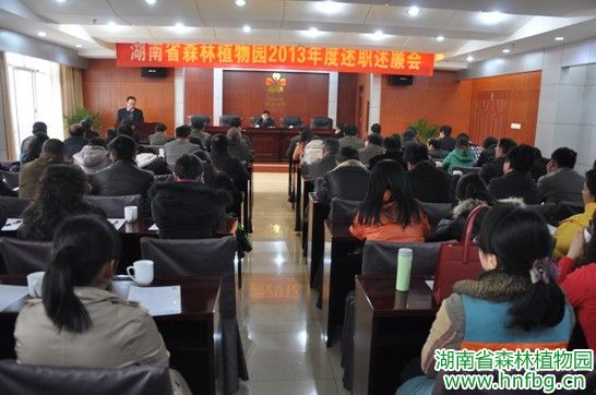2014年1月2日下午3点,我园召开2013年度园领导班子述职述廉测评会,由省林业厅人教处、机关党委、监察室负责同志组成的考核小组出席了会议,园副科以上干部及普通职工代表80余人参加会议。会议由厅人事教育处处长姜新华主持,首先由园党委书记王明旭代表我园领导班子进行了述职述廉并就本人进行述职述廉,然后其他园领导分别就自己分管工作完成情况、党风廉政责任制执行及廉洁自律情况、党的群众路线教育实践活动完成情况等方面向参会人员述职述廉。最后,与会人员对园领导进行了民主测评。