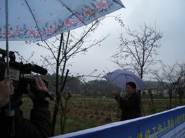 由于近期连续的阴雨天气,记者关注的焦点不仅仅是樱花开放的日期,更关注花期推迟的原因和在这种天气下会对树木花草会产生什么影响,面对记者的这些问题,我园植物专家吴思政教授从专业的角度一一进行了回答,并冒雨到樱花树下进行详细解说。