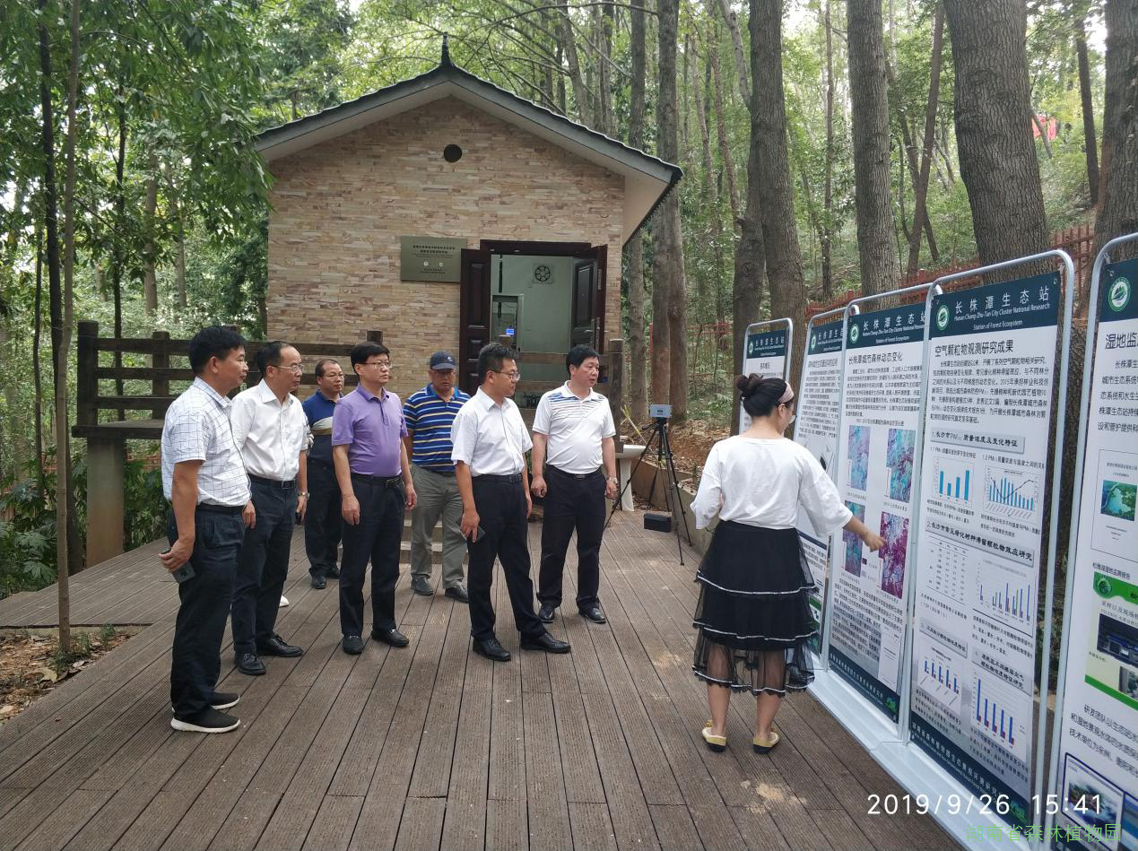 2019年9月26日下午,国家林业和草原局森林资源管理司徐济德司长我园调研指导。省林业局森林资源管理处黄勇处长、园党委书记彭春良、园主任刘玮和副主任何友军等领导陪同调研。徐司长分别调研了我园北门名花广场,长株潭生态站建设运行情况,珍稀植物园珍稀名贵树种迁地保育情况等工作。调研中,徐司长充分肯定了湖南森林资源管理和定位监测工作,表示湖南的“负(氧)离子”科普观测工作做得早做得好,并高度认可湖南的“康养”意识。