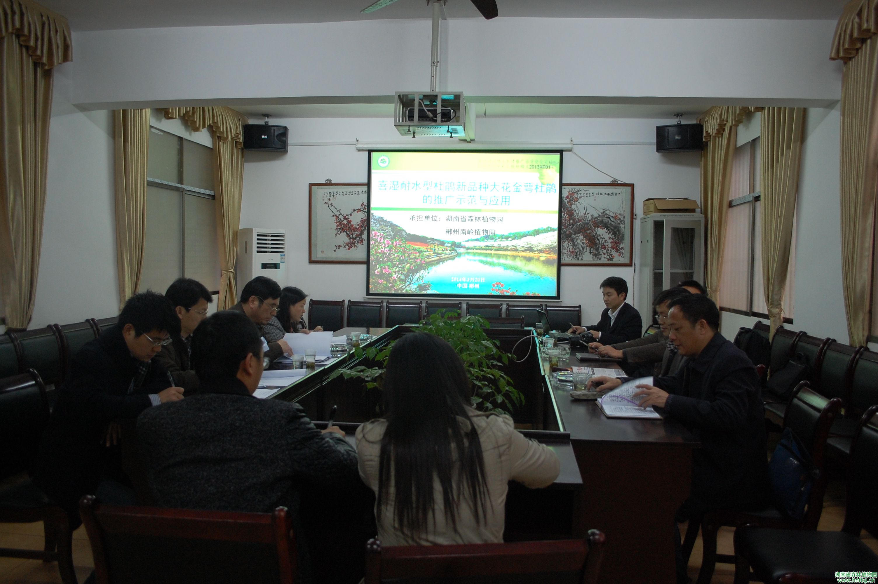 3月20日,省林业厅科技推广总站蒋胜铎副站长率绩效考评组一行4人来到郴州市植物园对我园彭春良研究员主持的中央财政林业科技推广项目“喜湿耐水型杜鹃新品种大花金萼杜鹃推广示范与应用”的实施情况进行了绩效考评。