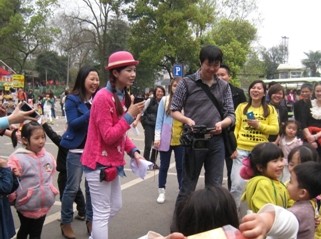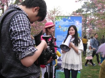 《果果游记》栏目是应省植物园宣传部的邀请,第二次来植物园拍摄赏花专题节目,这次活动将被制作成一期十几分旅游节目,通过萍乡电视台在当地播出,加重播一起将播出七次,会起到非常好的宣传效果。栏目组在当地招募了上百名游客、其中数十个家庭参加了专题拍摄活动,分别在樱花湖广场、名花广场、组培停车坪三个场地拍摄了踩汽球、猜成语、判断对错等亲子游戏活动,在园中掀起了与花同戏的欢乐气氛,吸引大量游客围观拍照。