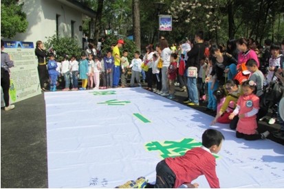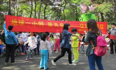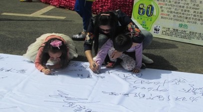 活动在上午10点开始,由科普部工作人员带领社区志愿者和砂子塘小学志愿者进行现场宣誓仪式,在横幅上面签上保护环境的标语,倡议大家共同参与到地球熄灯一小时的活动中来,并对园区内垃圾的进行捡拾,倡导文明旅游来提醒我们要保护身边的环境。