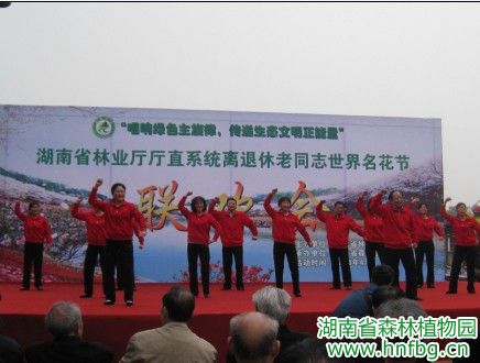 2014年4月3日上午,“唱响绿色主旋律,传递生态文明正能量”—厅直系统离退休老同志世界名花节联欢会在我园樱花湖畔举办。湖南省林业厅党组成员、副厅长李益荣及厅离退休老领导和有关部门负责人,林业厅机关、省林勘院、省林科院、省植物园等单位离退休人员代表和演出人员200余人欢聚一堂,唱响绿色主旋律,共度美好时光。我园党委书记王明旭、园主任彭春良、副主任郑焱等领导参加了此次活动。