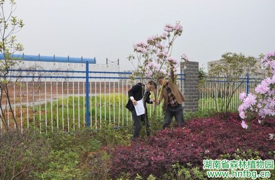 2014年4月3日,湖南省林业厅科技推广总站蒋胜铎副站长组织有关专家对我园承担的中央财政林业科技推广示范项目“优良乔木型杜鹃新品种---西施杜鹃繁育及其在城市森林建设中的应用示范”进行了现场查定。