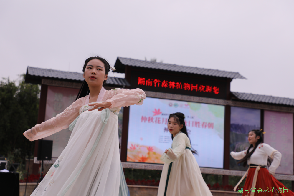 10月13日下午,我园与省湖湘文化研究会合作的“仲秋花月夜,秋日胜春朝”汉风游园活动在《丹枫迎秋》、《清欢怅》、《广寒宫》、《洛水佼人》等古风舞蹈中拉开了序幕,90多名来自长沙各大高校的汉服爱好者参加了活动。