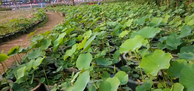 你知道植物园的荷花在哪吗?它们就集中在北门名花广场的南端,两三千盆的盆栽荷花蜿蜒如同一条绿色飘带。此时身处其中,满眼青翠,满鼻荷香。荷花的花期主要集中在6月中旬-8月上旬,但花期早的,不到6月就已开放了。
