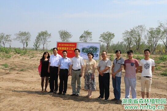第三届中国绿化博览会(以下简称:绿博会)湖南展区开工仪式于2014年6月24日在天津顺利举行。参加此次开工仪式的主要有:绿博会代表周俊启副部长、张希祥经理,武清区妇联代表韩秀华副主席、赵玉娟主任,湖南省绿化委代表徐金伟主任以及园林公司代表舒东膂经理。