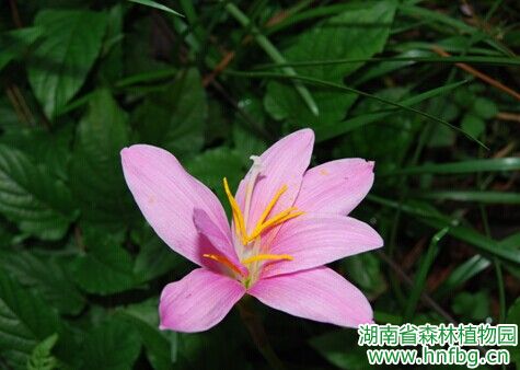 韭兰(学名:Zephyranthes grandiflora Lindl.),又名韭莲、风雨花, 石蒜科、葱莲属多年生草本。叶片线形,极似韭菜。花茎自叶丛中抽出,花瓣多数为6枚,有时开出8枚,花粉红色,花期5-9月。