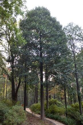 乐东拟单性木兰(Parakmeria lotungensis)树冠塔形,树形紧凑,具柏木之风姿;叶革质,深绿,在阳光下油光发亮,嫩叶紫红色耸立于老叶丛中,十分醒目;花大、白色、沁香、美丽,是优良的园林绿化树种。其树干通直,材质优良,心材明显,供建筑、家具等用,属珍贵用材树种。乐东拟单性木兰是我国特有寡种属植物,花杂性,心皮有时退化成数枚至1枚,在木兰科中少见,对研究木兰科植物系统发育有较高学术价值,属我国珍稀濒危植物渐危种。成片栽植成林,呈幽深之感.防风、防火、隐蔽,尤显奇效。为中速生长树种,适应性强,比较耐干旱脊薄,能在丘陵酸性红壤土壤生长,很有发展前途。