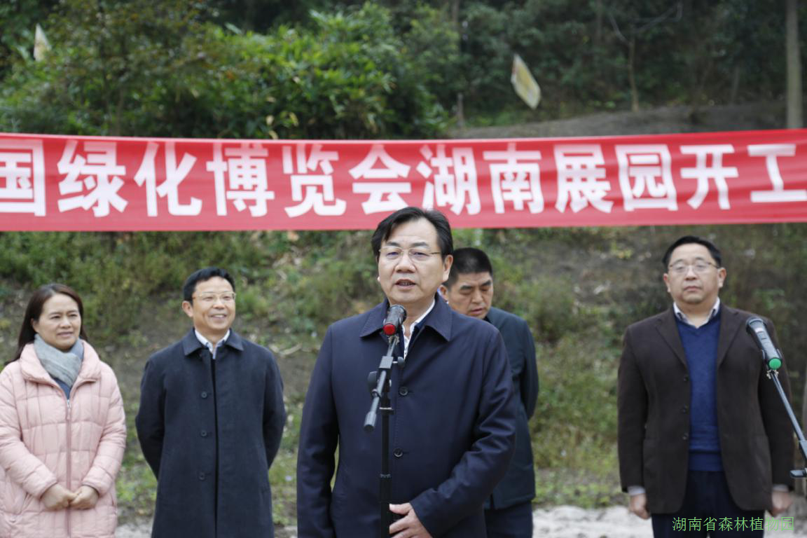 吴剑波副局长在讲话中指出湖南素有“九州粮仓”“鱼米之乡”的美誉,湖湘文化源远流长。今天开工建设的湖南展园以“神农品新绿,百草汇潇湘”为主题,将充分显现“山水织锦绣,潇湘写华章”的优美画卷,反映湖南国土绿化、生态文明建设的巨大成就。