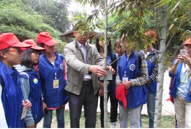 10月21日秋风习习,来自理工大学11名大学生志愿者在我园黄涛高级工程师的带领下,来到了我园核心景区第一批悬挂树牌的地点——竹类观赏园,活动以竹园为中心点将逐渐辐射全园。6月份我园与百度百科官网、中南大学合作,在我园颜立红博士的大力指导下,制作出第二代带有二维码的树牌1300余块。第二代树牌在第一代树牌的基础上进行了优化,在电子化升级快速的时代,我园也紧跟时代步伐用先进的手段更好的普及科普知识。来园参观学习的游客可通过手机扫描二维码进入百度百科的官网,内有更详细的树种介绍。