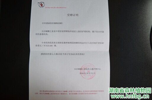 公益,是每个单位必尽的责任;公益,是每个公民应有的良知。湖南省森林植物园属于社会公益性科研事业单位,一直以来本着“爱心献社会·真情暖人间”的理念、关注与支持爱心公益事业,并以实际行动践行社会主义核心价值观。