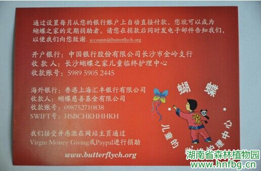 在多次联系三方单位确定时间后,10月21日,植物园旅游中心的代表与植物园社区的同志一起到“蝴蝶之家”完成了爱的捐赠。大家首先在工作人员的带领下参观了“蝴蝶之家”,听取了有关的介绍,随后在捐赠善款的同时也一并将联系到的社会爱心医疗帮扶机构名单与联系方式一同转交给“蝴蝶之家”,希望通过我们的桥梁作用,争取更多的帮扶力量。同时希望大家能够多奉献自己的一份爱与关怀,让更多不幸的儿童得到安慰和希望。