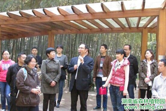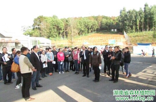 11月13日上午阳光明媚,湖南省林业厅森林公园管理局副局长梁局长带领全省“森林公园管理脱产培训班”50多名学员来我园实地学习,此次培训班是湖南省森林公园管理局举办的第一期脱产培训班,为期5个月。梁局长介绍此行目的:“省植物园在全国生态文明建设中可谓是全省的排头兵,在科学研究、生态旅游各方面都值得探讨和学习。尤其是精心打造的“湖南省世界名花生态文化节”旅游文化品牌,经过几年的培育和发展,在全省乃至全国具有深远的旅游品牌影响力,此次培训班的学员来到省植物园实地认真学习并寻求各大森林公园与省植物园合作共赢的机会。”