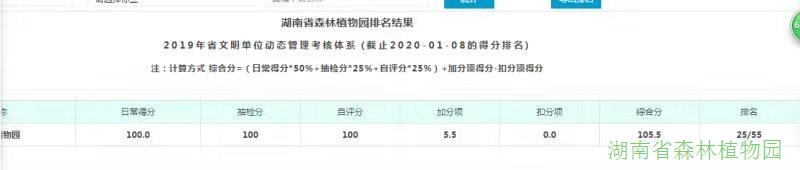 近日,我们收集整理并向“湘直文明”动态管理宣传平台上报了69次文明创建任务信息,日常得分获得满分100分,在55家省级文明单位中名列第1名。另外加分项得5.5分,在55家省级文明单位中名列第25名。