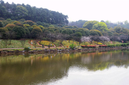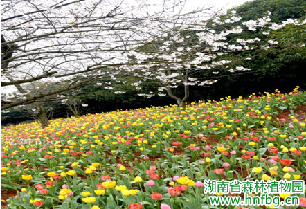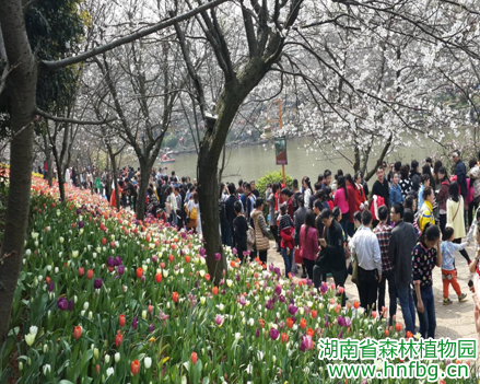 历经暖冬春寒,河边岸柳开始吐绿,空中鸟儿欢唱,潇湘大地处处生机盎然。位于长株潭城市群中心的植物园更是花的海洋,湖边樱花花瓣正冲破萼片的束缚或低垂或昂首将其惊艳、美丽和浪漫展现在人们面前。樱花树下各种花色的郁金香与樱花相映成趣,构成了一幅幅美轮美奂的风景画。