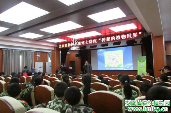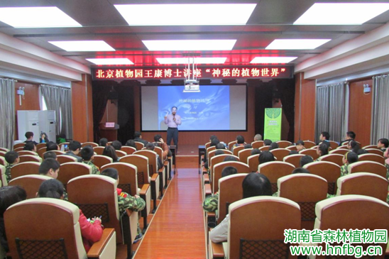 3月26日上午10点,北京植物园科普馆馆长王康博士受中国植物园联盟之托,以及湖南省森林植物园邀请,来到“中国植物园联盟公众科普计划珍稀濒危植物保护科普展”湖南展区,与他同行的还有北京植物园的李菁博老师,全国智慧旅游景区建设吴超老师。在讲座的现场王博士通过轻松幽默的讲座为大家打开了“神秘的植物世界”之门。孩子们聚精会神,不时踊跃举手回答问题,不时掌声响起,现场气氛超火爆,王康博士和植物们一起散发着魅力。现场听讲座的有我园分管科普工作的蒋利洪副主任、郑焱副主任、共建处、园林公司、旅游中心、安保处、党政办、研发中心等相关人员;还有10余所小学、中学的生物老师;共计120余人。