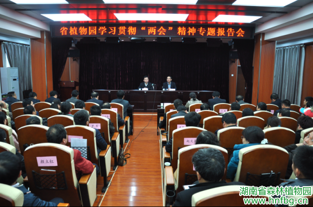 4月9日下午,全国人大代表、省林业厅邓三龙厅长应邀到我园传达全国“两会”精神。厅办公室、科外处、产业办负责同志,我园全体在职干部职工、各经营单位代表共150余人参加了会议。