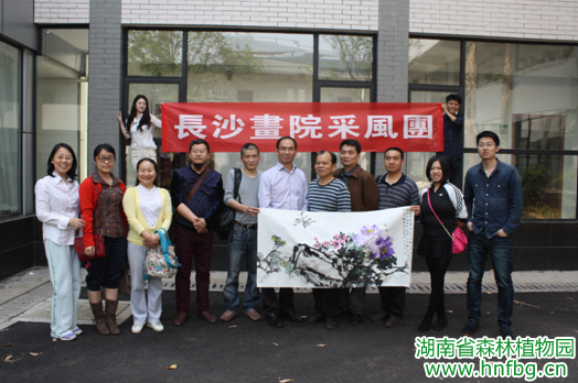 4月16日下午,长沙画院的领导与艺术家一行来植物园参观采风,园王明旭书记对植物园进行了介绍,大家一致盛赞植物园美景。阳春布德泽,万物生光辉,艺术家们珠联碧合,当场泼墨挥毫,画就一幅牡丹杜鹃翠鸟图。湖南省森林植物园正值“世界名花生态文化节-春之歌”期间,数百个花卉品种相继盛放,五彩缤纷,是世界最美的春季花园,不仅成为长沙市民休闲的好地方,也吸引了周边省份的游客纷纷慕名前来观赏。在此之前有数批画家来园进行了写生与采风。