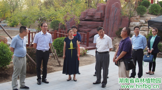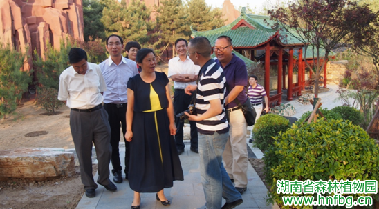 2015年5月20日,省林业厅总工程师文振军在省绿委办专职副主任蒋红星、植物园党委书记王明旭的陪同下视察了由我园园林公司承建的第三届中国.天津绿化博览会湖南园建设工地,陪同视察的还有天津市林业局吴学东副局长、天津市武清区人大副主任薛梅及天津武清区妇联等一行十余人。