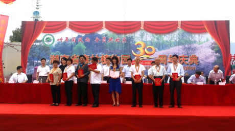 5月31日,我园在北大门广场隆重举行了湖南省森林植物园建园三十周年庆典活动。省林业厅党组副书记、副厅长胡长清,省科技厅党组副书记、副厅长杨治平等领导出席会议。庆典由彭春良主任主持。曾在我园工作过的职工、离退休职工以及全体在职职工等200余人出席。大家笑逐颜开,欢聚一堂,热烈庆祝植物园成立三十周年,回顾植物园所走过的光辉历程,展望未来的美好前景。