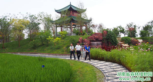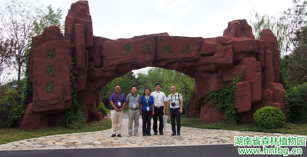 第三届中国绿化博览会于2015年8月18日上午开幕,省林业厅总工程师文振军、省绿委办专职副主任蒋红星、省植物主任彭春良等参加了绿博会组委会召开的新闻发布会,在开完发布会后文厅长一行还参观了湖南园。文厅长是第二次参观湖南园,看到比第一次更美的景观效果,对湖南园的建设给予了高度评价,尤其是宣传窗无论从设计布局还是相片的质量和内容在整个园区都是最好的,是湖南园的一大亮点。在湖南园内不仅让游客能看到湖南最著名的景点爱晚亭(按1:1比例建造)、还有世界闻名的杂交水稻、湖南的特色植物等;而且在水榭廊宣传窗布置的十几幅彩照中能看到湖南最美的景点,同时能看到湖南林业近几年取得的巨大成就。看完后文厅长再一次赞扬湖南园在总体设计和施工水平上是湖南近几年参加全国性园林绿化博览会水平最高的,同时也提出了更高要求,由于这次参展时间长,希望进一步加强维护管理,确保景观效果不打折扣,最后还叮嘱我们要对湖南的特色植物如乔木状红继木等做好冬季防寒处理,确保来年能成活,并在天津生长良好。