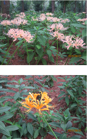 ) 常绿灌木,是优良观叶观花观果植物,也是优良的林下耐荫地被植物。湖南全省山地广布,其花瓣多为蓝色,果实独特,深秋至冬天蓝色浆果挂满全株,初期宝石蓝色,后期深蓝色,十分漂亮,果期长达3个月以上,经久不落。《优良林下地被植物-黄常山繁育和园林应用配套技术示范》课题组依据黄常山优良的观花观果特性,开展了黄常山与石蒜配置模式研究,使花叶不同期的石蒜与开蓝色花、挂蓝色果的常绿灌木黄常山完美组合,呈现出别样的园林景观效果。