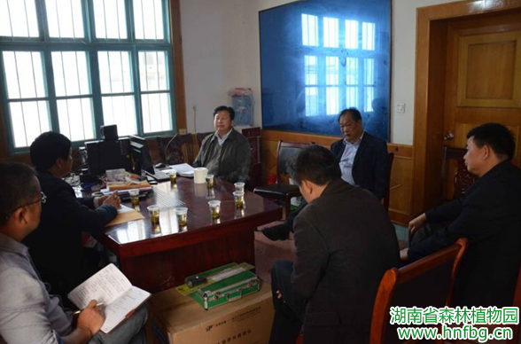 随后,李书明主任、李志辉教授与园党委书记彭春良、主任李林山、副主任何友军等人就珍稀苗木繁育与开发进行座谈,对基地苗木选育与苗木示范推广进行深入交流。李书明主任指出:植物园作为世界银行贷款湖南森林恢复和发展项目中心苗圃应以珍稀苗木繁育为主,要加强珍稀苗木资源的开发利用以及示范推广,在全省起到引领与示范作用,加强林业各部门之间的协同合作与信息沟通,争取各级支持,努力拓展苗木市场,服务全省的造林绿化事业。