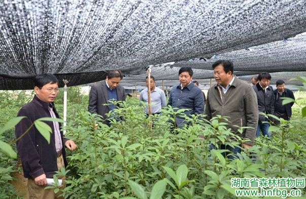 11月9日上午,厅外资办主任李书明、中南林业科技大学林学院教授李志辉在我园党委书记彭春良、主任李林山、副主任何友军等人陪同下到园东湖塘珍稀苗木繁育基地考察指导。在考察过程中,李书明主任、李志辉教授深入田间地头,详细查看了珍稀树种榉树、桢楠、闽楠、黄檀、花榈木、乐东拟单性木兰、观光木等苗木培育与生长情况。我园研发中心主任颜立红、基地办主任陈迎辉就当前苗木的生长繁育情况做了详细的汇报。李书明主任、李志辉教授现场查看了各类苗木的生长繁育情况后,一致认为我园基地建设起点高、进度快,苗木品种丰富、质量好,给予了“质量好、数量大、品种优、长势齐”的高度评价。