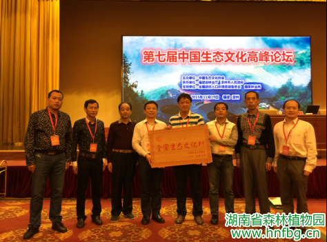 11月19-20日,第七届中国生态文化高峰论坛在福建省漳州市举行,全国政协人口与资源环境委员会副主任、中国生态文化协会会长江泽慧,福建省人民政府副省长黄琪玉,国家林业局副局长彭有冬,福建省林业厅厅长陈则生,漳州市委书记陈家东等有关领导及中国生态文化有关负责人、各省(市、区)林业厅分管生态文化的厅领导、各省生态文化协会有关负责人和“全国生态文化村”代表出席会议。我园党政办主任、湖南省生态文化协会副秘书长康用权陪同省林业厅吴剑波副巡视员应邀出席。