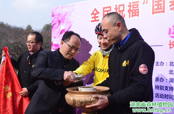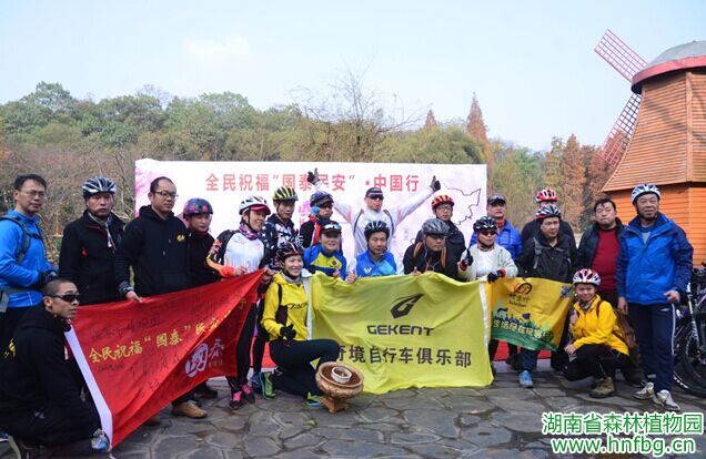 12月10日上午,由北京碧溪花卉有限公司、北京不死骑自行车社团主办、我园承办的2015“全民祝福国泰民安中国行”长沙站活动在我园美丽的樱花湖畔成功举行。我园李柏海副主任出席活动并致辞。园各部门职工以及中新社湖南分社、湖南日报等六家媒体共同到场参与此次活动。