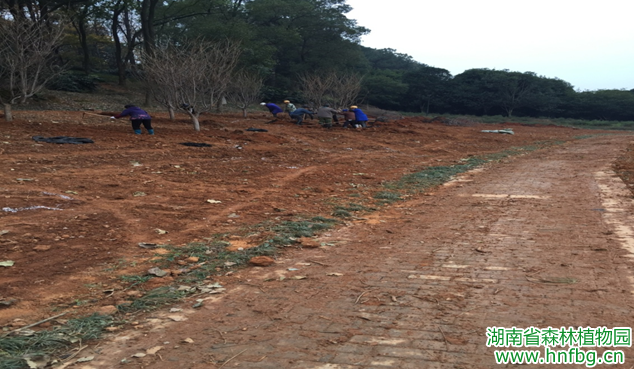 为了全面提升樱花湖周边樱花景观效果,延长樱花观赏期,新的一届植物园党委行政班子决定对樱花湖周边进行提质改造,改造内容包括在原樱花广场、樱花湖东坡栽植大规格(胸径12-15cm)普贤象晚樱品种,并增设部分游步道、丰富地被植物及休闲广场铺装等工作。该项目时间紧、任务重、标准高,为了不耽误工期,确保苗木质量关,园派遣吴思政、陈永安俩同志于12月14日赴山东采购大规格普贤象晚樱品种,同时,园林公司安排主要技术力量每天深入现场抓紧进行地形处理及现场放样工作,在此期间园主要领导多次亲临现场对项目实施过程进行指导。第一车装有50株大规格普贤象晚樱(胸径12-13cm)于12月19日顺利到达植物园,在卸完苗木后根据现场放线情况马上进行了栽植,在苗木栽植过程中严格按技术规程和标准要求进行施工,从卸树、挖穴、施肥、土壤改良及覆土等工序都有专人负责,确保施工做到全过程控制。尤其在卸苗时小心翼翼生怕破坏了土球,苗木栽植时不仅施足了磷肥,还大量使用了园林公司自己生产的环保生物基质,以改良并活化土壤,确保明年4月这批樱花开得旺盛。这次共采购268株大规格普贤象晚樱品种,并于12月21日全部运抵植物园,全部苗木栽植工作预期2015年12月底完工,2016年元月将着手进行游步道铺装及地被植物栽植等工作。