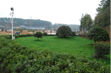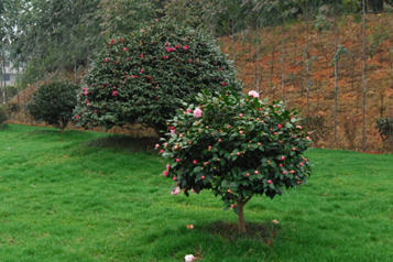 入口景观对于一个景区来说有着重要的地位,不仅体现了该园的造景水平,而且起到吸引游客、彰显特色的重要作用。植物园北门车行道入口处是一块三角形地带,原场地平坦,植被凌乱、单一,景观平淡。2015年末由园艺建设处负责改造该地块景观,已完成建设。通过营造微地形,增加地形趣味性,在至高点种植了一株难得一见的大茶梅树,成为视觉焦点。碧绿的常绿草坪上配植了山茶花、紫薇等,以杜鹃花、红叶石楠围合,成为一个四季常绿、四季有花的绿岛,给人舒适、自然、怡人的视觉感受。满足了一个入口的景观、安全、引导等功能要求。