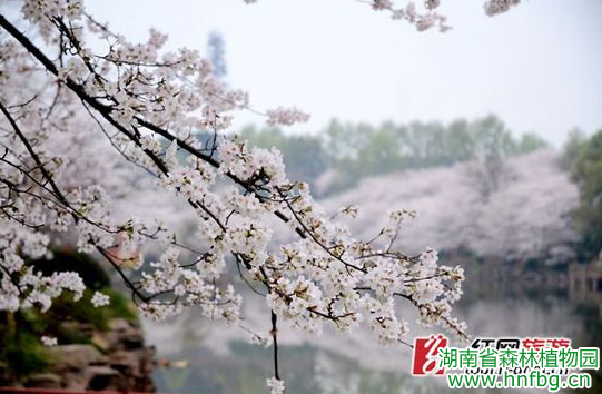 樱花湖边,雪白的吉野樱盛开,如梦似幻。