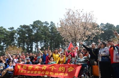 3月19日上午,阳光明媚,百花齐放,为了弘扬雷锋精神,进一步推动 “学雷锋”公益助残活动深入持续开展,弘扬中华民族传统美德,丰富残障人士的娱乐生活,让残障人士享受到来自社会的温暖,省森林植物园与长沙市光爱之家助残服务中心开展了主题为“我和春天有个约会”学雷锋大型公益助残活动,残疾朋友们在志愿者一对一倾情陪伴下来到省森林植物园的樱花湖畔,并在那里开展了丰富的互动活动,空气清新,花香袭人,残疾朋友们开心地赏花,大声的歌唱,他们幸福的笑容为省植物园春天的美景更添和谐色彩。