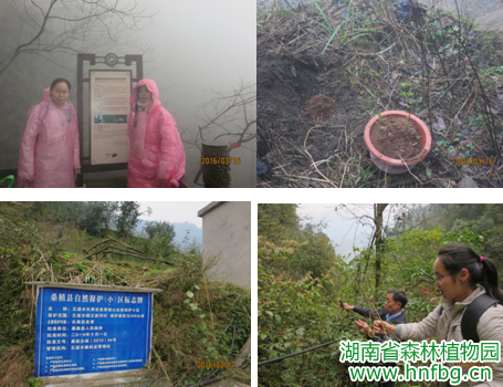 我园承担了国家林业局珍稀濒危物种野外救护与繁育项目《长果安息香的繁育与重引入技术研究》,近日,项目组成员田晓明、欧阳泽怡先后对张家界天门山和桑植县五道水镇的长果安息香自然群落进行考察,天门山附近对某长果安息香野生种群仅余3株,针对这一状况,项目组与永定区林业局共同栽植了10株人工繁育的长果安息香幼苗,以期恢复该地区的种群数量,接下来,项目组将对回归个体进行持续的监测, 以掌握整个种群和个体的长期适应过程、 个体的存活率、 个体定植的位置效应,为以后的长果安息香回归提供依据。