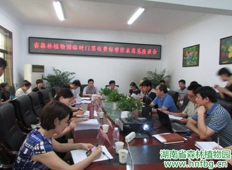 8月25日上午9时,在省森林植物园的会议室召开了“省植物园临时门票收费标准征求意见座谈会”。湖南省人大、省政协、省政府法制办、省财政厅、省科技厅、省旅游局、省林业厅、省物价局、省价格成本调查队等机关单位、政府部门以及湖南经视、都市频道、潇湘晨报、三湘都市报、长沙晚报、红网、湖南人民广播电台、交通频道等新闻媒体和消费者代表出席了会议。我园蒋利洪副主任和旅游中心、计财处等同志参加了会议。
