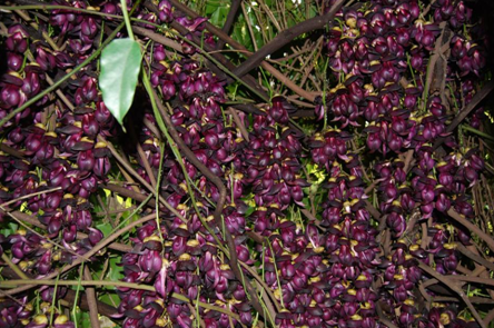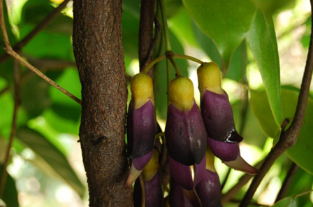 )是豆科黧豆属常绿木质藤本植物,总状花序生于老茎上,花型十分奇特,每朵花都犹如雀鸟,花期4~5月。观赏地点:北门藤本园。