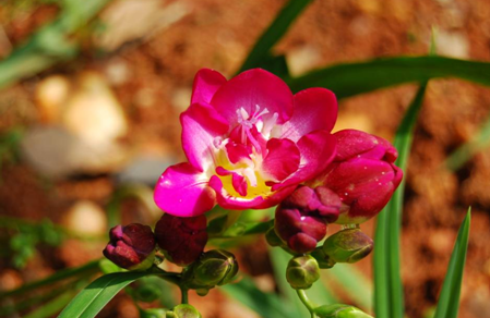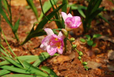 )为鸢尾科香雪兰属多年生球根花卉,叶子线形,穗状花序,花偏生一侧,有香味,花期4~5月。植物园有蓝色的‘塔希提’、粉白色的‘蜜月’、紫色的‘紫雨’、红色的‘红色之美’、黄色的‘旖旎’,都已陆续开花。观赏地点:动物园路沿线。