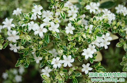 )是茜草科六月雪属的常绿小灌木,高可达90厘米。叶革质,花单生或数朵丛生于小枝顶部或腋生,花冠淡红色或白色。因为它在6月开放时白花满枝,如同银装素裹,因而得名“六月雪”,我园的六月雪却每每在四月便集中开放一次,之后零星开花至八月。六月雪具有叶细、枝密、干粗等特点,是良好的盆景材料。