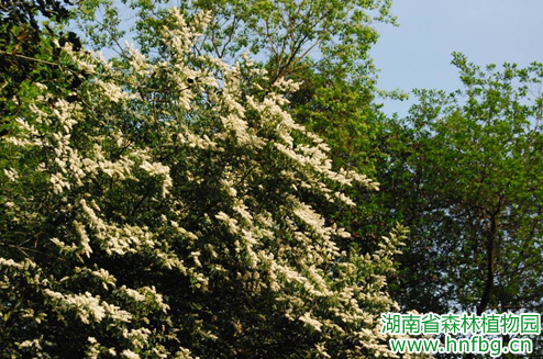 )是木犀科女贞属落叶灌木或小乔木,高可达4米。圆锥花序长4~10cm,花朵密集如花束般,白色、有芳香,花期4~5月,园林绿化中常用。