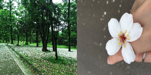 油桐树下,落英缤纷,宛如飘雪。洁白的桐花铺满林荫小径上,诗意满满,令人沉醉。