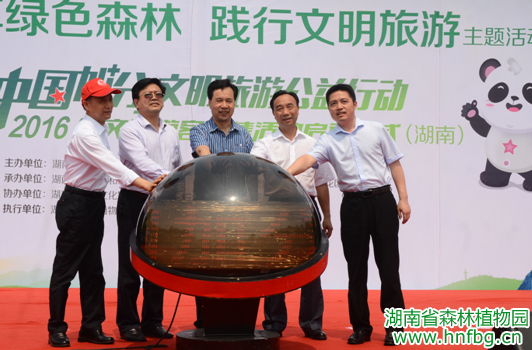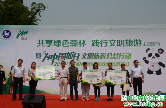 5月14日上午,由省林业厅、省旅游局、省文明办共同举办以“共享绿色森林·践行文明旅游”主题活动暨“为中国加分”文明旅游公益行动启动仪式在我园北大门广场举行。我园李林山主任应邀出席并为文明游客代表发放任务卡。湖南省文明办副主任熊科文、省林业厅副厅长柏方敏、省旅游局副局长王超祥先后在启动式上讲话。