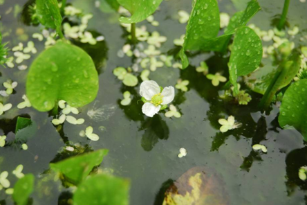 )是泽泻科的水生小草本,由于目前自然分布种群极少,被列为国家一级重点保护野生植物。2015年从杭州引进种植,所有植株均顺利开花结果,我园技术人员通过播种和分株繁殖数百株,引种取得成功。长喙毛茛泽泻此时正值开花,白色的小花十分小清新。
