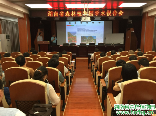 7月18日下午,湖南省森林植物园在重点实验室三楼会议室召开学术报告会。来自上海辰山植物园的执行园长胡永红博士和园长顾问、原加拿大蒙特利尔植物园园长吉尔.万桑(Gilles Vincent)先生做了一堂生动的学术报告,报告以“植物园主要职责:物种保护,科普教育以及科学研究”为主题。报告会由省植物园副主任李柏海主持,彭春良书记因事没有参加报告会,会前专门与胡永红园长通电话。李林山主任及在家园领导和全园干部职工参加此次报告会。